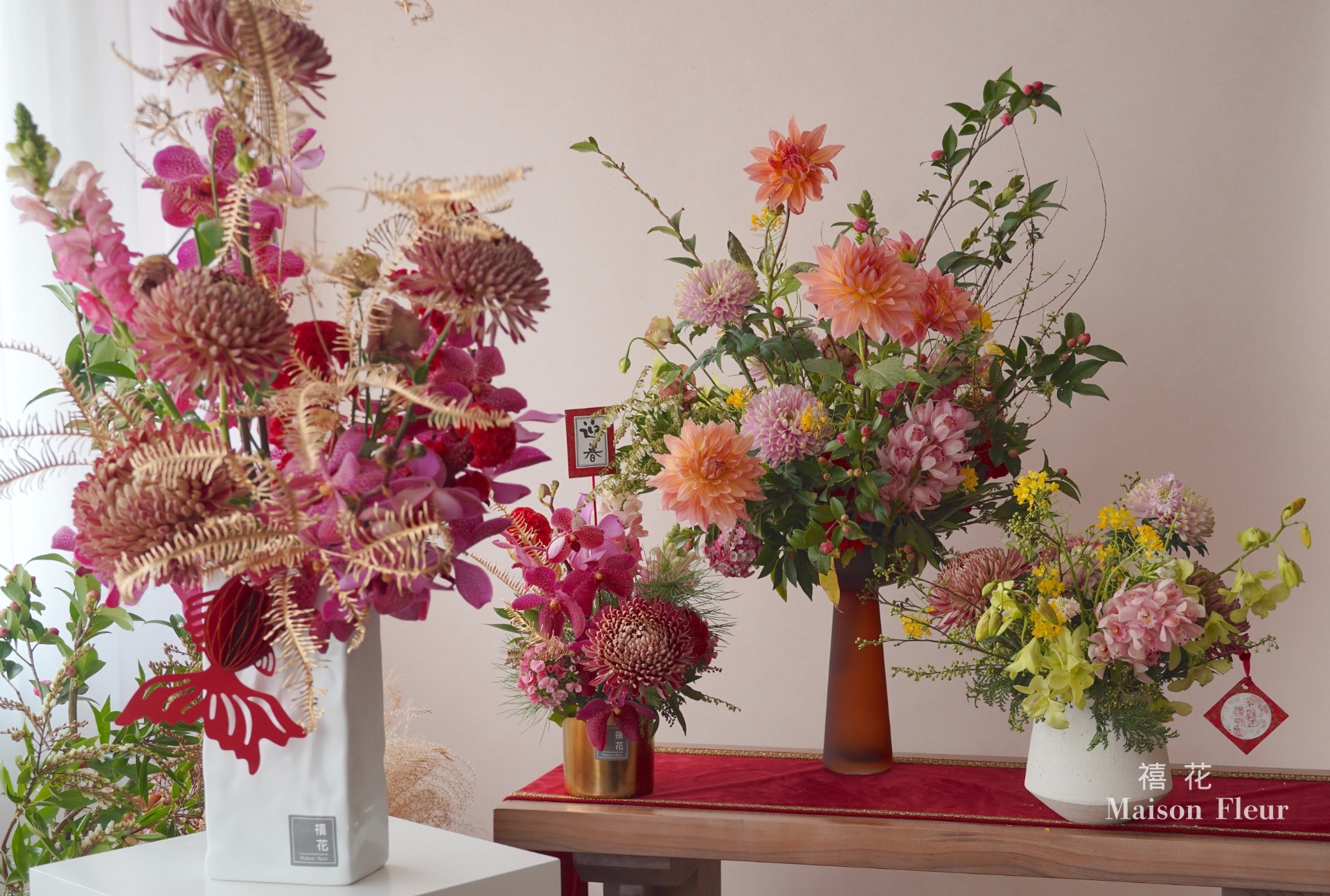 花禮設計在年節喜氣與早春氣息之間取得平衡,